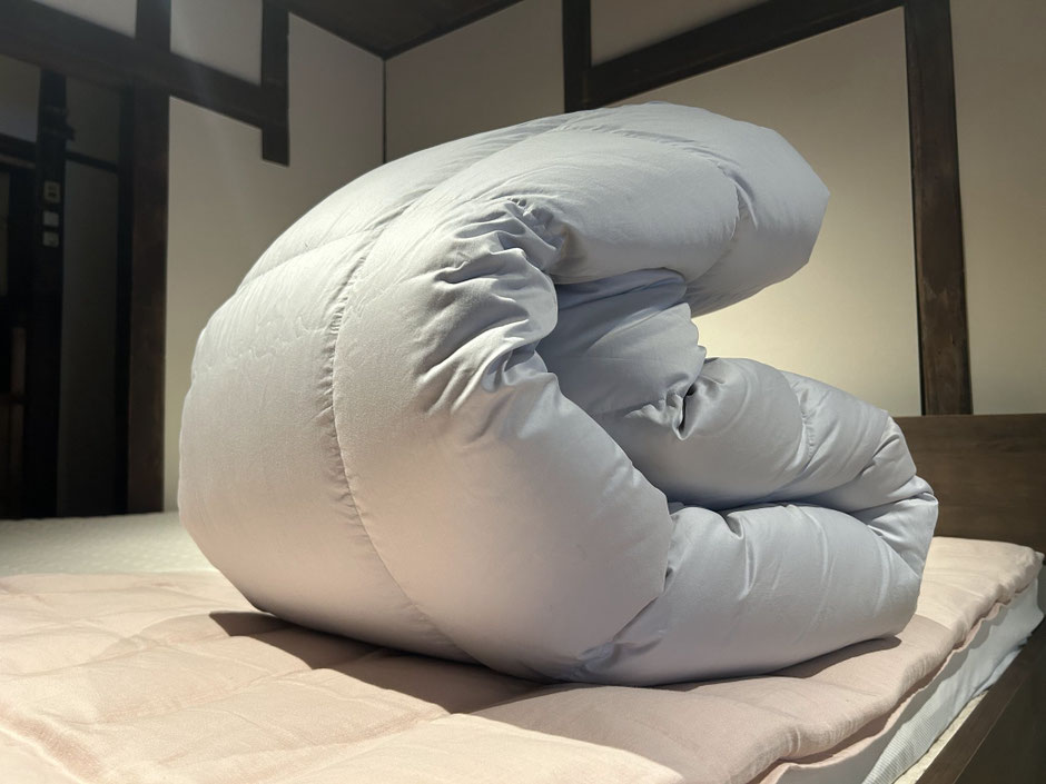ダブルサイズなら足し羽毛が300~400g必要なところをセミダブルサイズに仕上げることで100gに抑えることが可能になる。