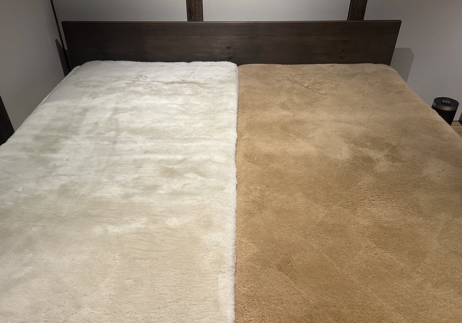 高密度ムートンは毛の密度が高く、一本一本がしっかり支えるため、身体の凸凹を均等に受け止めて体圧を分散します。横向きでも肩が痛くなりにくく、仰向けでも腰が沈みすぎないのが特徴。